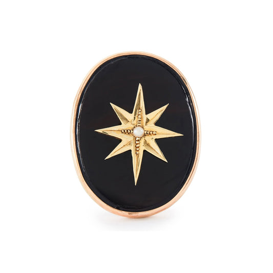 Victorian 9ct Gold Onyx and Pearl Ring
