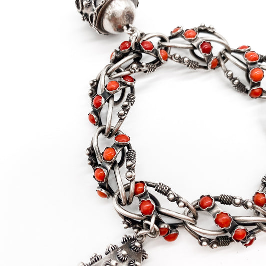 Silver Coral, Moonstone and Chrysoprase Charm Bracelet