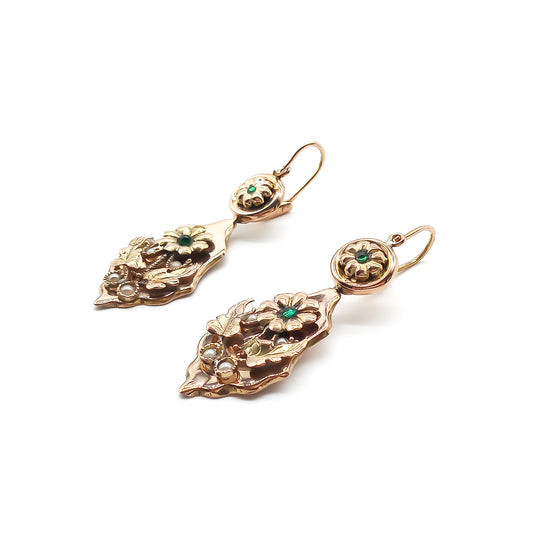 18ct Rose Gold Emerald and Pearl Drop Earrings
