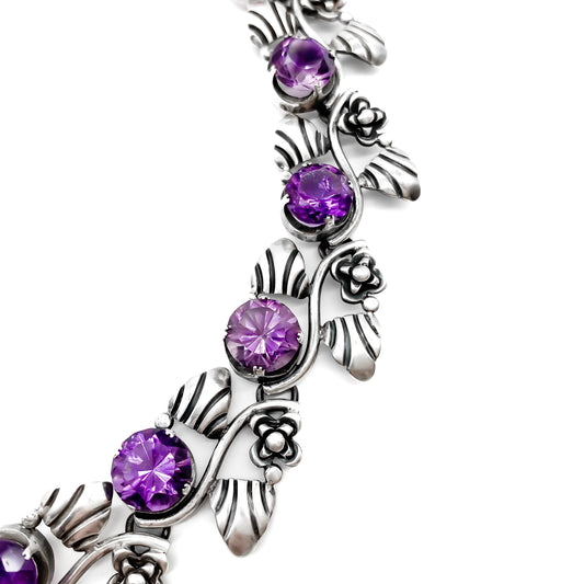 Silver Arts and Crafts Smoky Quartz and Amethyst Brooch