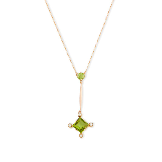 Victorian 9ct Gold Pearl and Peridot Necklace