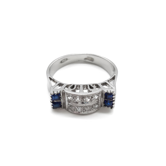18ct White Gold Art Deco Diamond and Sapphire Ring