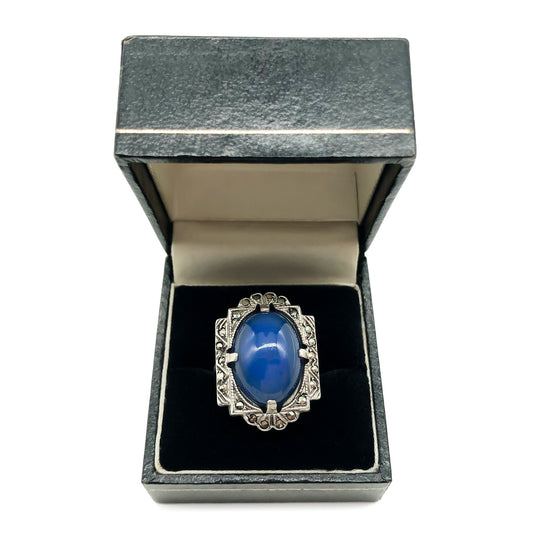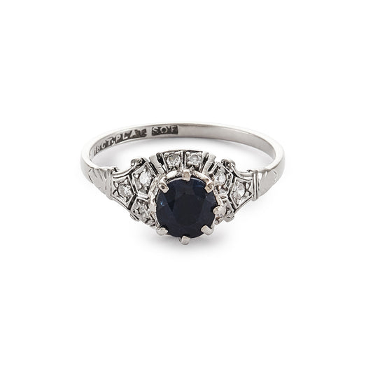 Art Deco 18ct White Gold/Platinum Sapphire and Diamond Ring