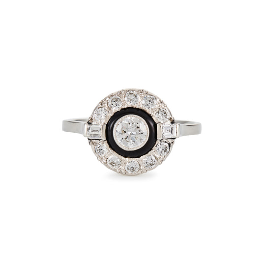 Art Deco 14ct White Gold, Onyx and Diamond Ring