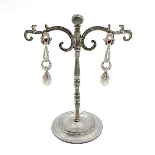Art Deco 18ct White Gold Diamond and Pearl Earrings