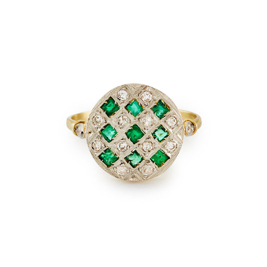Art Deco 18ct Gold Emerald and Diamond Ring