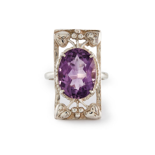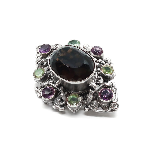 Silver Arts and Crafts Smoky Quartz and Amethyst Brooch