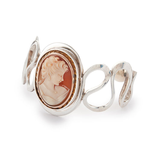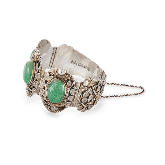 Mid-Century Silver Mexican Onyx Clamper Bangle