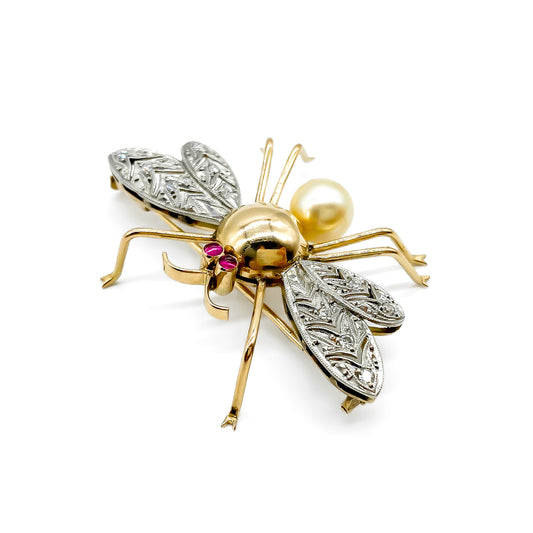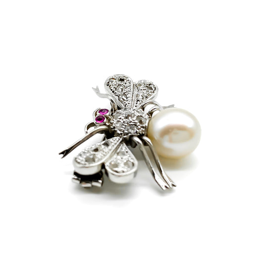 18ct Rose Gold Diamond and Pearl Insect Brooch