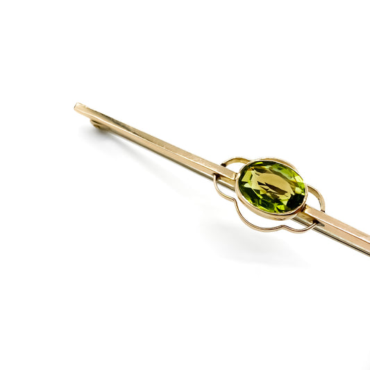 Edwardian 9ct Gold Peridot Bar Brooch
