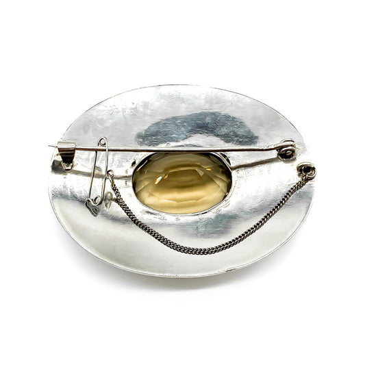 Silver Arts and Crafts Smoky Quartz and Amethyst Brooch