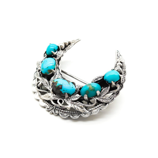Silver Turquoise Crescent Brooch