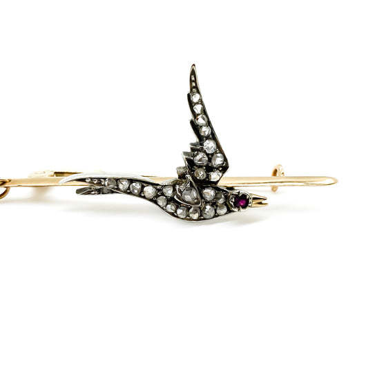 Victorian 15ct Rose Gold Diamond Bird Brooch