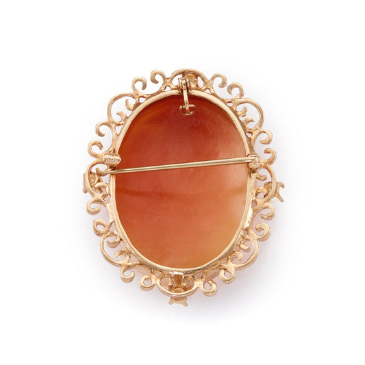 Edwardian 10ct Rose Gold Cameo and Pearl Brooch