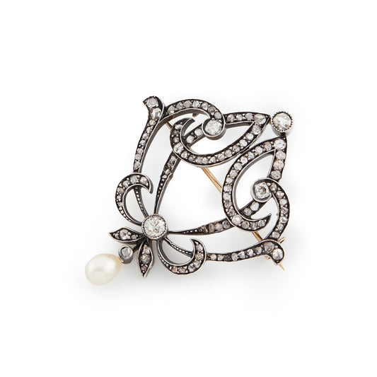 Edwardian 18ct Gold and Silver Diamond and Pearl Brooch