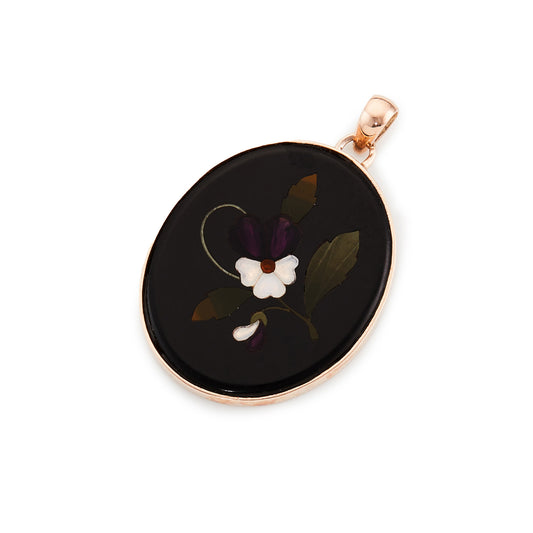 Edwardian 9ct Rose Gold Pietra Dura Pendant