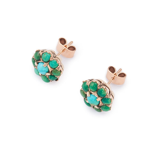 Edwardian 9ct Rose Gold Turquoise Stud Earrings
