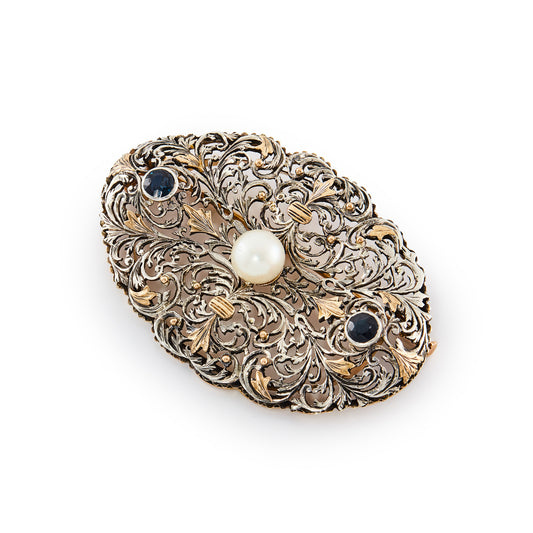 Edwardian Rose Gold/Silver Sapphire and Pearl Brooch