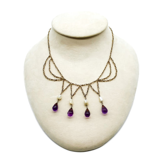 Edwardian Silver Gilt Pearl and Amethyst Necklace