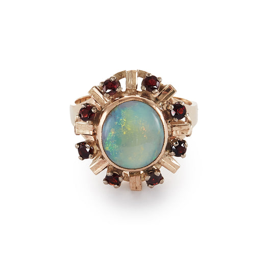 Mid-Century 9ct Rose Gold, Opal and Garnet Ring