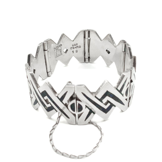 Mid-Century Silver Mexican Onyx Clamper Bangle