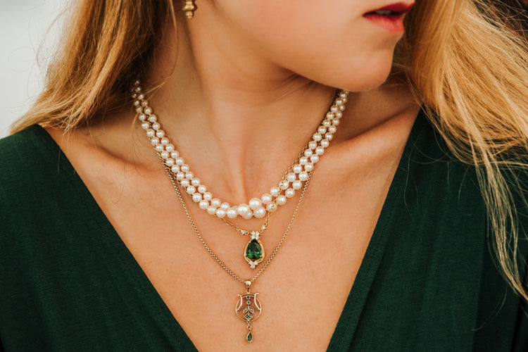 Each antique necklace in our collection carries with it a story that spans generations, a testament to the intricate craftsmanship and artistic sensibilities of the past. From Art Nouveau's flowing lines to Art Deco's geometric precision, our pieces represent a diverse range of historical styles that have left an indelible mark on the world of jewellery.
