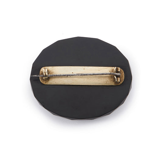 Victorian Pietra Dura Jet Brooch