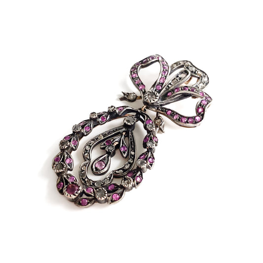 Victorian 15ct Gold and Silver Diamond and Ruby Pendant