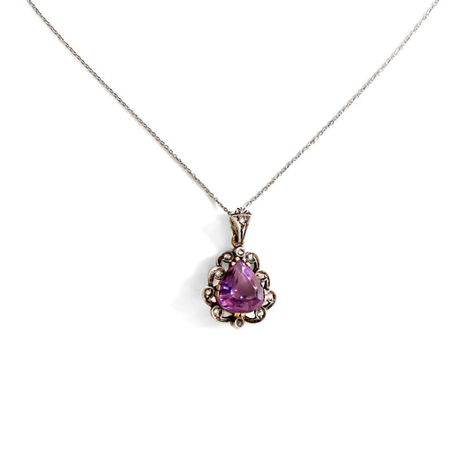 Victorian 18ct Gold and Silver Amethyst and Diamond Pendant on Chain